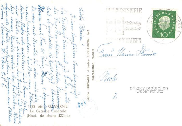 12929266 carte postale Gavarnie Hautes-Pyrenees Grande Cascase postalisch gelaufen Erhaltung siehe scans [NatalD47] KatCode: 11170065165188