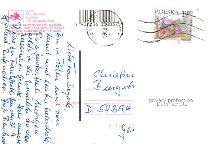alte Postkarte Gdansk Altstadt Marienkirche Rathaus postalisch gelaufen Erhaltung siehe scans [KathaD79]