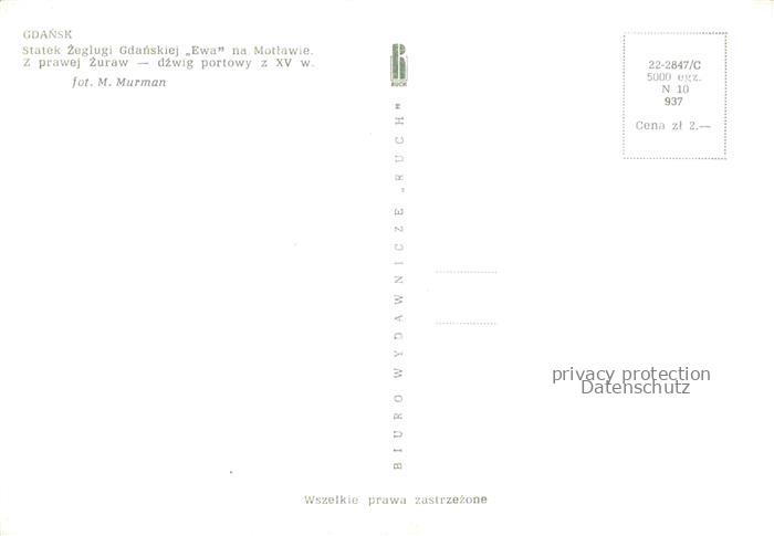 74119910 GDANSK Danzig PL Fahrgastschiff Ewa Schiffskran postalisch nicht gelaufen Erhaltung siehe scans [FriedD77] KatCode: 11410