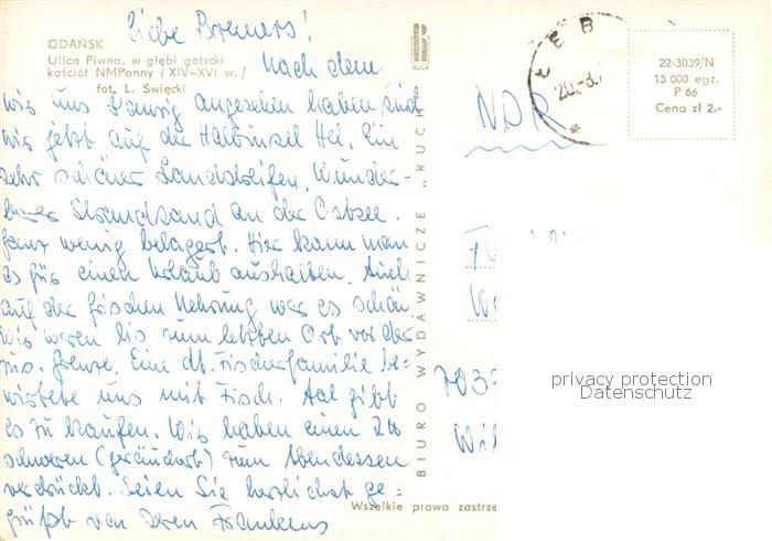 old postcard Gdansk Danzig PL Ulica Piwna w glebi gotiycki kosciol NMPanny postalisch gelaufen Erhaltung siehe scans [WerneD78]