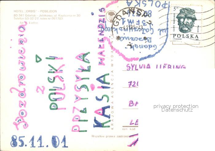 old postcard Gdansk Hotel Orbis Posejdon postalisch gelaufen
