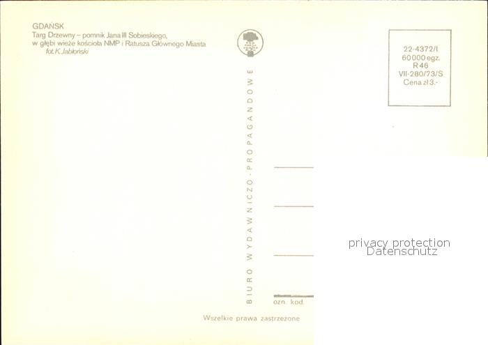 Gdansk Targ Drzewny pomnik Jana III Sobieskiego w glebi wieze kosciola NMP i Ratusza Glownego Miasta postalisch nicht gelaufen Erhaltung siehe scans [WerneD78]