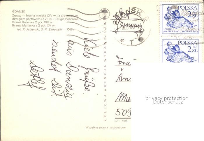 old postcard Gdansk Zuraw Brama Mariacka postalisch gelaufen Erhaltung siehe scans