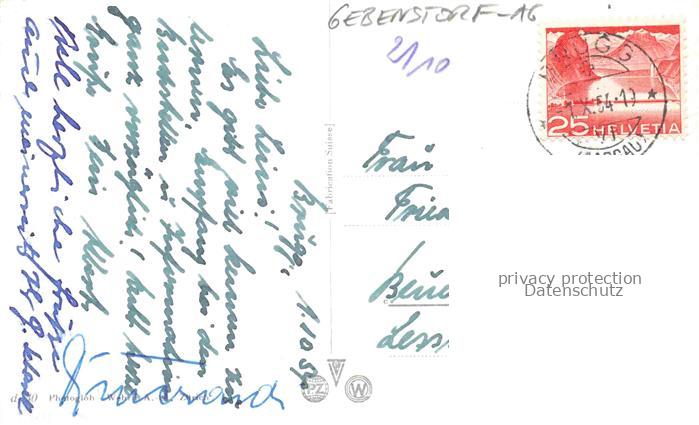 34142640 alte Postkarte Gebenstorf Baden AG Blick von Gebenstorfer Horn Zusammenfluss von Aare und Limmat postalisch gelaufen Erhaltung siehe scans [WerneD78] KatCode: 11470010010054