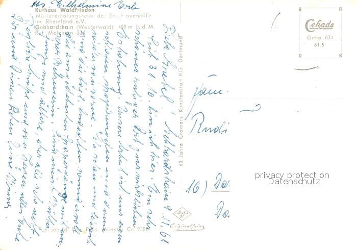 73283690 alte Postkarte Gebhardshain Fliegeraufnahme Kurhaus Waldfrieden postalisch gelaufen Erhaltung siehe scans [LiesaD40] KatCode: 11110007132039