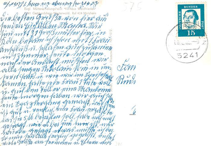 73873446 alte Postkarte Gebhardshain Kurhaus Waldfrieden Gastraum postalisch gelaufen Erhaltung siehe scans [FriedD77] KatCode: 11110007132039