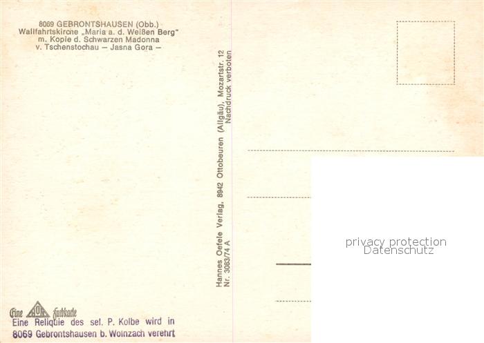 73271373 Gebrontshausen Wallfahrtskirche Maria auf dem Weissen Berg postalisch nicht gelaufen Erhaltung siehe scans [KathaD81] KatCode: 11110009186162