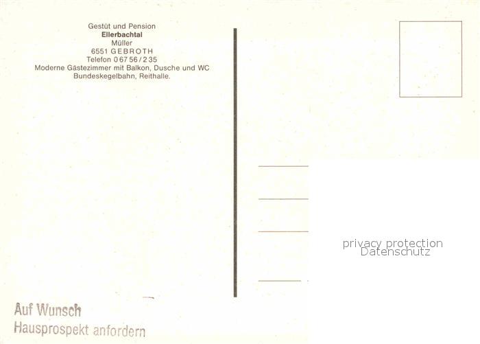 72777869 Gebroth Gestuet und Pension Ellerbachtal Pferde postalisch nicht gelaufen Erhaltung siehe scans [LiesaD40] KatCode: 11110007133033