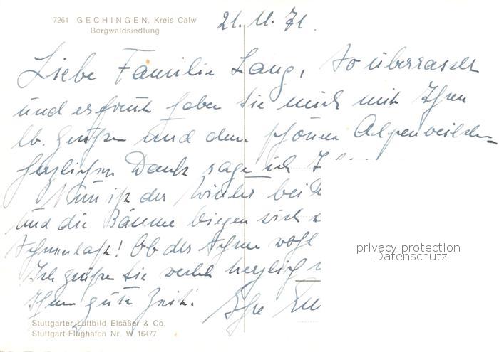 73833348 alte Postkarte Gechingen Bergwaldsiedlung Fliegeraufnahme postalisch gelaufen Erhaltung siehe scans [FriedD77] KatCode: 11110008235029