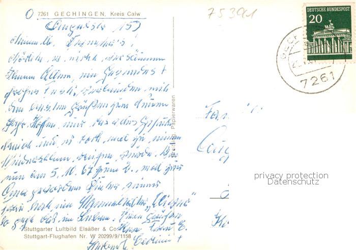 73853509 alte Postkarte Gechingen Fliegeraufnahme postalisch gelaufen Erhaltung siehe scans [FriedD77] KatCode: 11110008235029