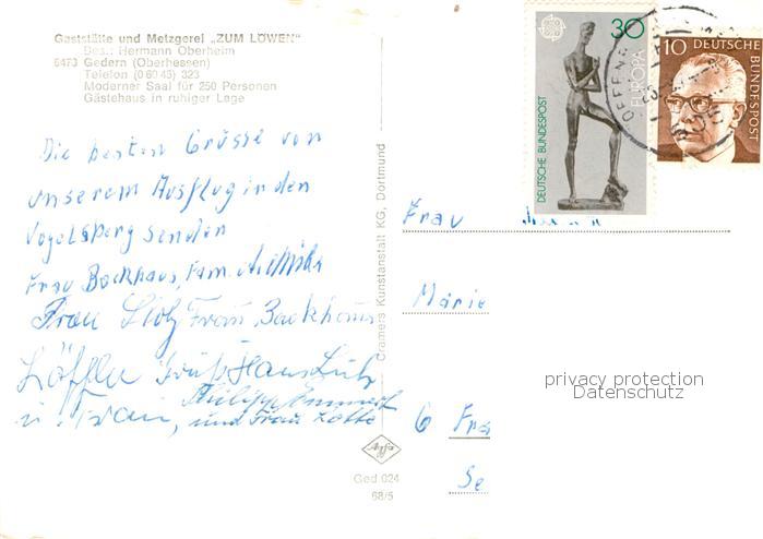 73852882 alte Postkarte Gedern Gaststaette Zum Loewen Gaststube Zimmer Gaestehaus postalisch gelaufen Erhaltung siehe scans [WerneD78] KatCode: 11110006440009