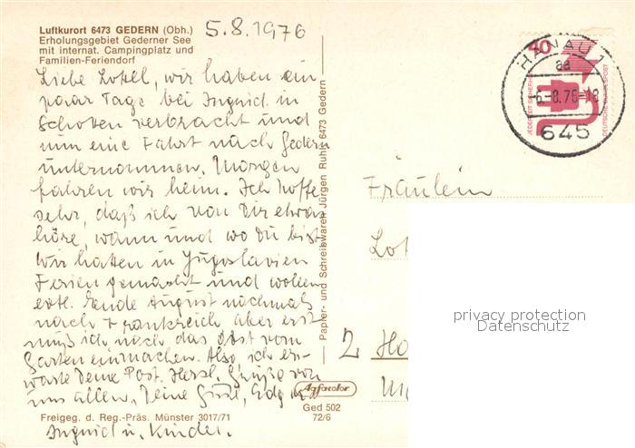 73714843 alte Postkarte Gedern See Fliegeraufnahme mit Campingplatz und Familienferiendorf postalisch gelaufen Erhaltung siehe scans [WerneD78] KatCode: 11110006440009