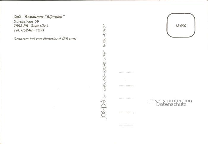 Gees Drenthe Cafe-Restaurant Bijmolen postalisch nicht gelaufen Erhaltung siehe scans