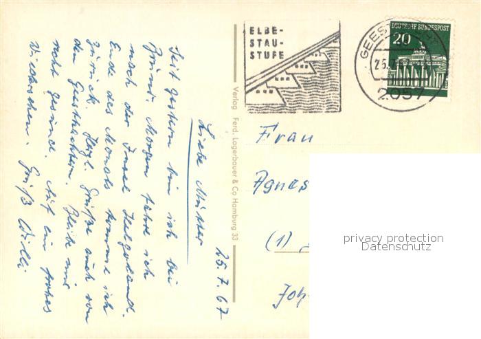 73731949 alte Postkarte Geesthacht Elbe Elbbruecke postalisch gelaufen Erhaltung siehe scans [FriedD77] KatCode: 11110001053032