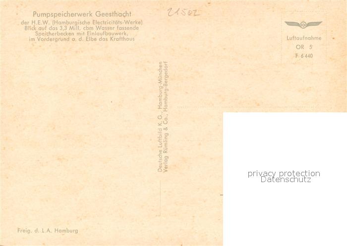 73643652 Geesthacht Elbe Pumpspeicherwerk Fliegeraufnahme postalisch nicht gelaufen Erhaltung siehe scans [WerneD78] KatCode: 11110001053032