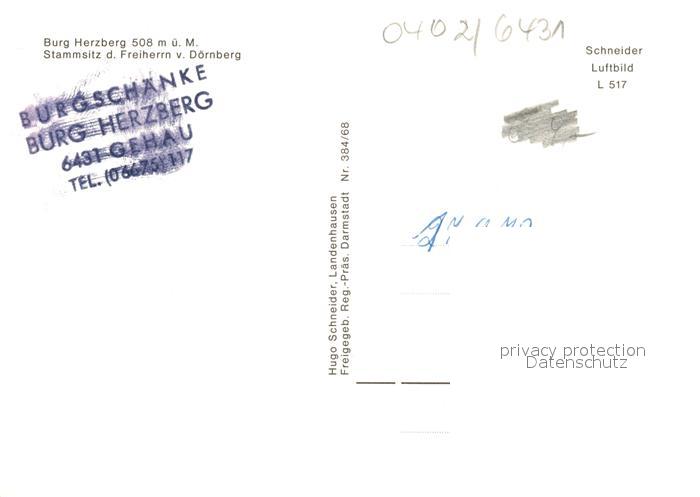 73281476 Gehau Bad Hersfeld Fliegeraufnahme Burg Herzberg postalisch nicht gelaufen Erhaltung siehe scans [NatalD47] KatCode: 11110006632004
