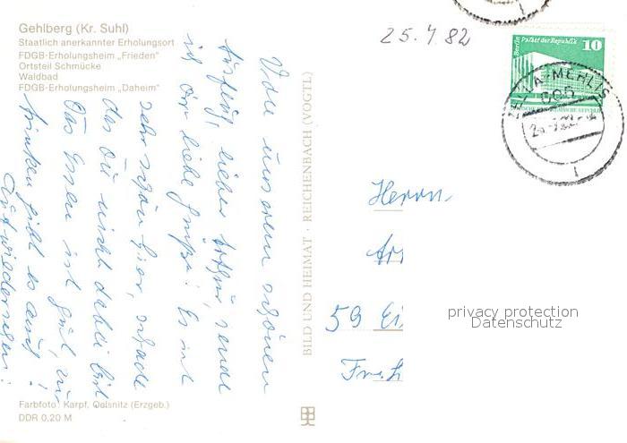 72962633 alte Postkarte Gehlberg Erholungsheim Frieden Schmuecke Waldbad postalisch gelaufen Erhaltung siehe scans [NatalD47] KatCode: 11110016070017