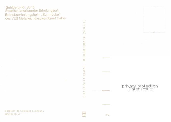 72742973 Gehlberg Erholungsheim Schmuecke Metallleichtkombinat Calbe postalisch nicht gelaufen Erhaltung siehe scans [LiesaD40] KatCode: 11110016070017