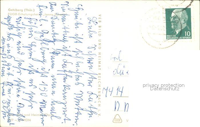 71924348 alte Postkarte Gehlberg FDGB Erholungsheim Jonny Scher postalisch gelaufen KatCode: 11110016070017