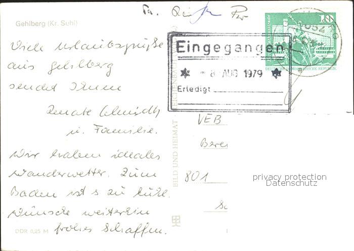 72362338 alte Postkarte Gehlberg Th?ringer Wald postalisch gelaufen Erhaltung siehe scans KatCode: 11110016070017