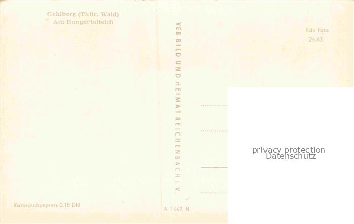 74153401 Gehlberg Thueringen Am Hungertalteich postalisch nicht gelaufen Erhaltung siehe scans [FriedD77] KatCode: 11110016070017