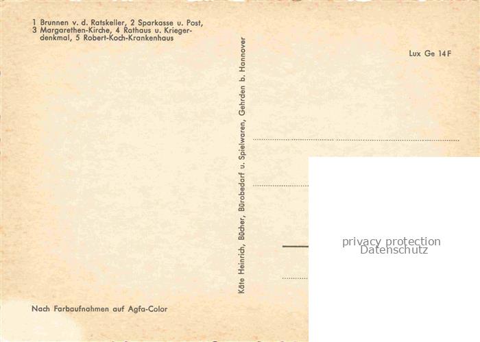 74026825 Gehrden Hannover Brunnen Ratskeller Sparkasse Post Kirche Rathaus Kriegerdenkmal Robert-Koch-Krankenhaus postalisch nicht gelaufen Erhaltung siehe scans [FriedD77] KatCode: 11110003241006