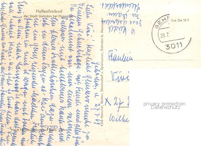 73010206 alte Postkarte Gehrden Hannover Hallenfreibad postalisch gelaufen Erhaltung siehe scans [WerneD78] KatCode: 11110003241006