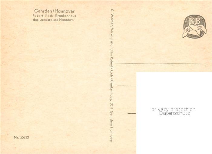 73542888 Gehrden Hannover Robert Koch Krankenhaus postalisch nicht gelaufen Erhaltung siehe scans [FriedD77] KatCode: 11110003241006