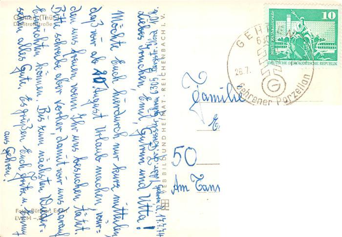73879618 alte Postkarte Gehren Langewiesen Dimitroffstrasse postalisch gelaufen Erhaltung siehe scans [FriedD77] KatCode: 11110016070032
