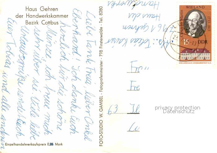 72633811 alte Postkarte Gehren Niederlausitz Haus des Handwerks postalisch gelaufen Erhaltung siehe scans [FriedD77] KatCode: 11110012061219