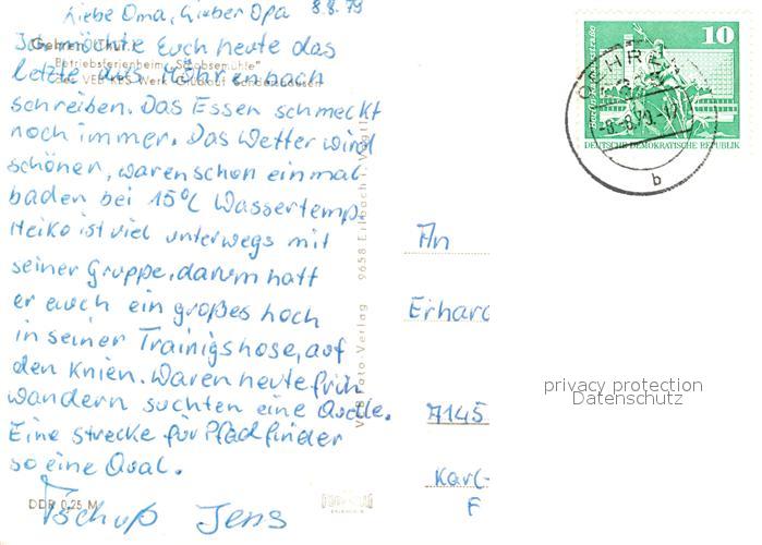 73135544 alte Postkarte Gehren Thueringen Betriebsferienheim Schobsemuehle postalisch gelaufen Erhaltung siehe scans [FriedD77] KatCode: 11110016070018