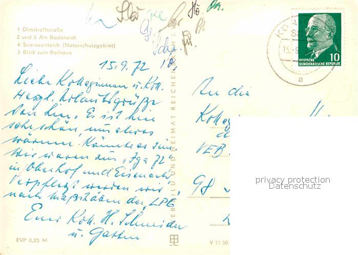 72703330 alte Postkarte Gehren Thueringen Dimitroffstrasse Badeteich Seerosenteich Rathaus postalisch gelaufen Erhaltung siehe scans [AndreD76] KatCode: 11110016070018