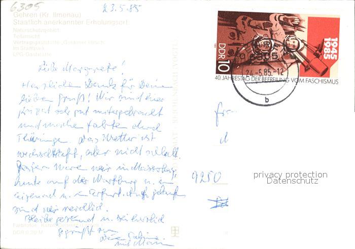 72126817 alte Postkarte Gehren Thueringen Restaurant Goldener Hirsch Stadtpark postalisch gelaufen Erhaltung siehe scans KatCode: 11110016070018