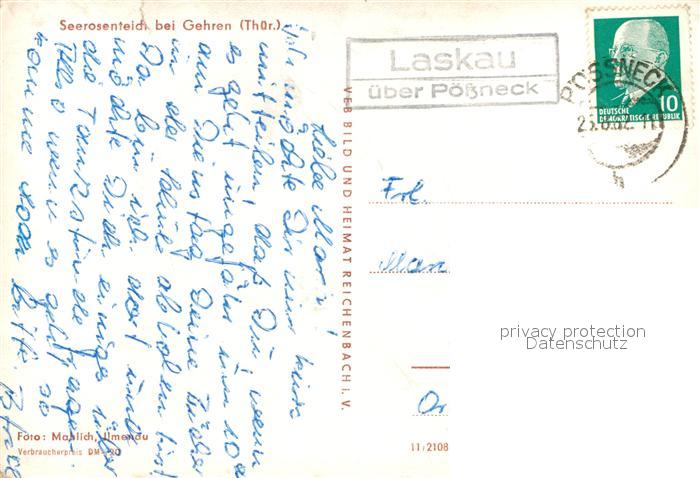 72941952 alte Postkarte Gehren Thueringen Seerosenteich postalisch gelaufen Erhaltung siehe scans [FriedD77] KatCode: 11110016070018