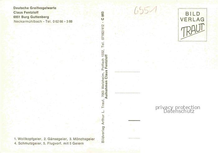 74050617 Geier Vulture Vautour Buitre Deutsche Greifenwarte Guttenberg Claus Fentzloff postalisch nicht gelaufen Erhaltung siehe scans [SanaeD93] KatCode: 22540000000000