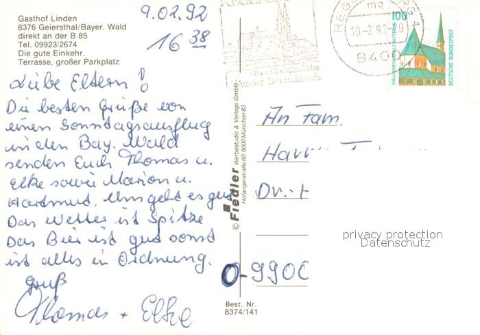 73662646 alte Postkarte Geiersthal Regen Gasthof Restaurant Linden im Bayerischen Wald postalisch gelaufen Erhaltung siehe scans [FriedD77] KatCode: 11110009276122
