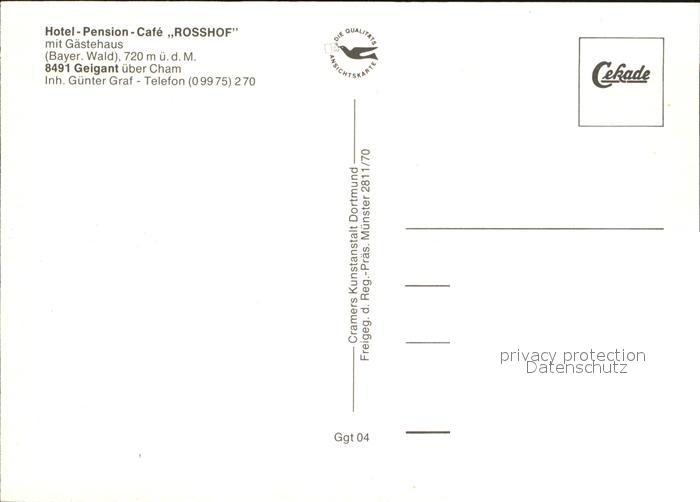 72600402 Geigant Hotel Pension Cafe Rosshof Gaestehaus Bayerischer Wald postalisch nicht gelaufen Erhaltung siehe scans [FriedD77] KatCode: 11110009372171