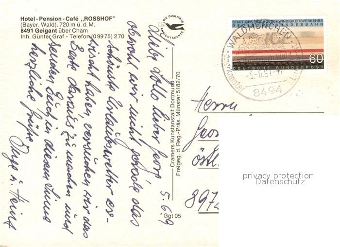 73087530 alte Postkarte Geigant Hotel Rosshof Fliegeraufnahme postalisch gelaufen Erhaltung siehe scans [NatalD47] KatCode: 11110009372171