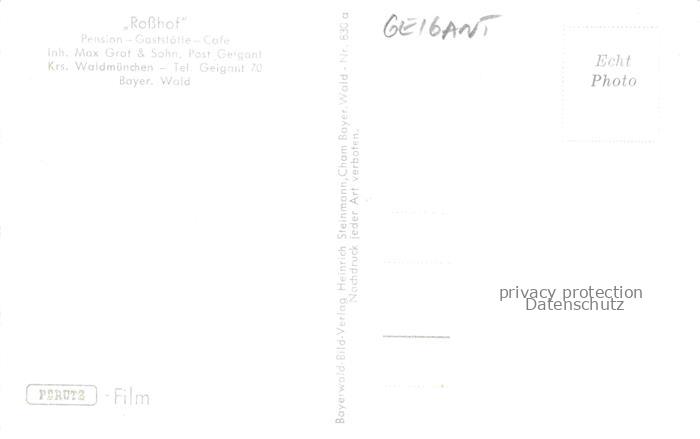 74155888 Geigant Waldmuenchen Cham Bayern Bergpension und Cafe Rosshof postalisch nicht gelaufen Erhaltung siehe scans [WerneD78] KatCode: 11110009372171
