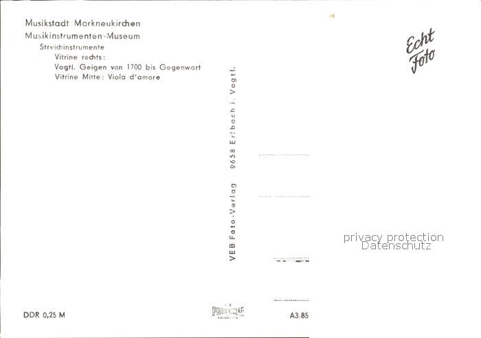 Geige Musikinstrumenten-Museum Markneukirchen postalisch nicht gelaufen Erhaltung siehe scans
