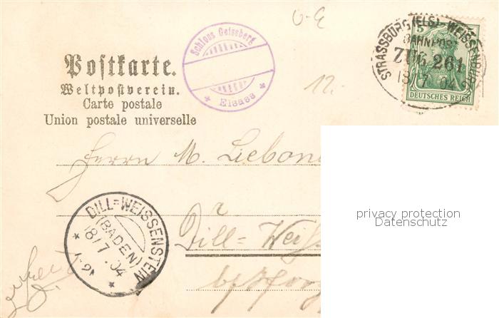 13851695 Geisberg 67 Bas-Rhin Denkmal Erob Geschuetz 1870 Denkmal der III. Armee Kronprinz Friedrich Wilhelm Leiche des Generals Abel Douay Schloss Geisberg postalisch gelaufen Bahnpost Erhaltung siehe scans [WerneD78] Bahnpost carte postale Wern Katcode 11170067767544