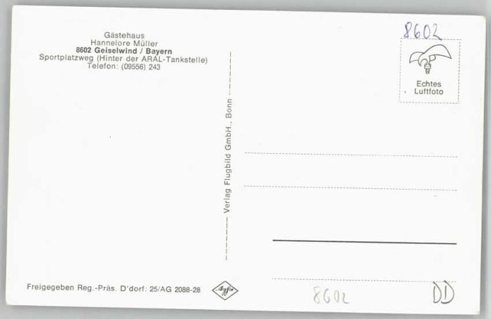 40237000 Geiselwind Gästehaus Hannelore Müller Fliegeraufnahme * 1955 KatCode 11110009675127