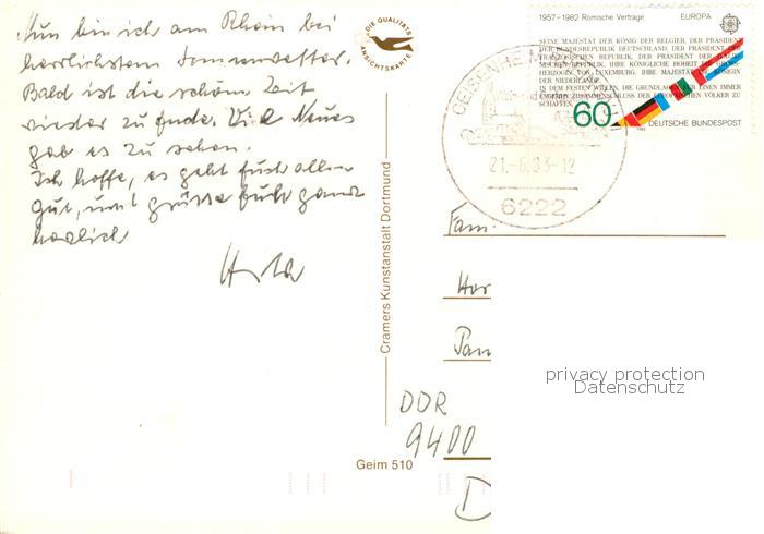 73840943 alte Postkarte Geisenheim Gesamtansicht Luftbild Rheingauer Dom Schloss Monrepos Lindenplatz Kirche postalisch gelaufen Erhaltung siehe scans [FriedD77] KatCode: 11110006439004