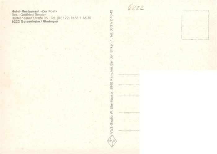 73890051 Geisenheim Hotel Restaurant Zur Post Gastraum Gaestezimmer postalisch nicht gelaufen Erhaltung siehe scans [WerneD78] KatCode: 11110006439004