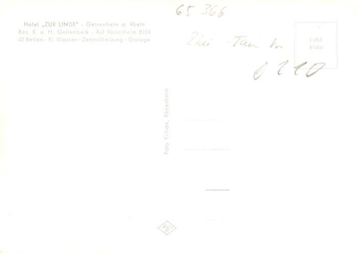73872403 Geisenheim Hotel zur Linde postalisch nicht gelaufen Erhaltung siehe scans [WerneD78] KatCode: 11110006439004