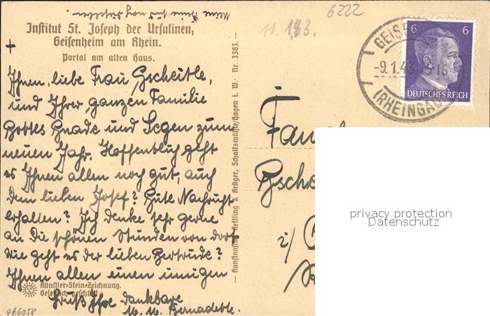 31734835 alte Postkarte Geisenheim Institut St. Joseph der Ursulinen postalisch gelaufen Erhaltung siehe scans KatCode: 11110006439004