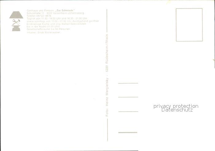 72529588 Geisenheim Johannisberg Gasthaus Pension Zur Schmiede postalisch nicht gelaufen Erhaltung siehe scans KatCode: 11110006439004