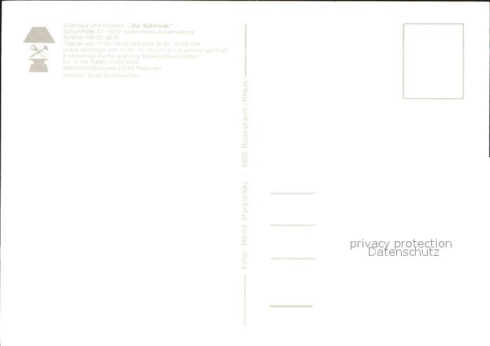72529589 Geisenheim Johannisberg Gasthaus Pension Zur Schmiede postalisch nicht gelaufen Erhaltung siehe scans KatCode: 11110006439004