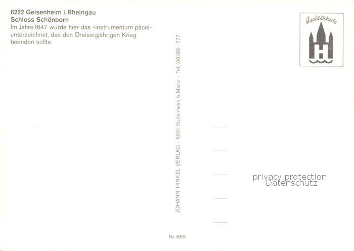 73254864 Geisenheim Schloss Schoenborn Mariensaeule postalisch nicht gelaufen Erhaltung siehe scans [FriedD77] KatCode: 11110006439004