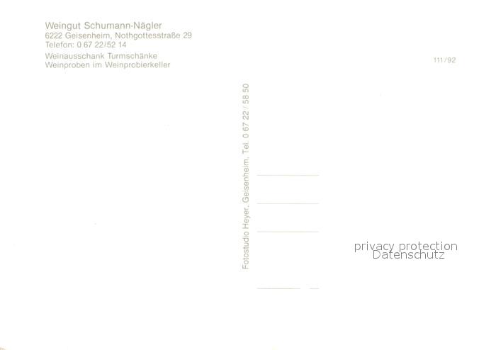73635693 Geisenheim Weingut Schumann Naegler Turmschaenke postalisch nicht gelaufen Erhaltung siehe scans [WerneD78] KatCode: 11110006439004